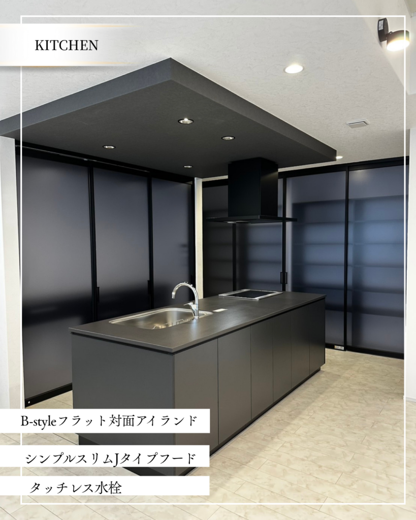 モノトーンの家づくりでできるだけ木目を排除したインテリアです。アイランド型のキッチンは素敵ですね!